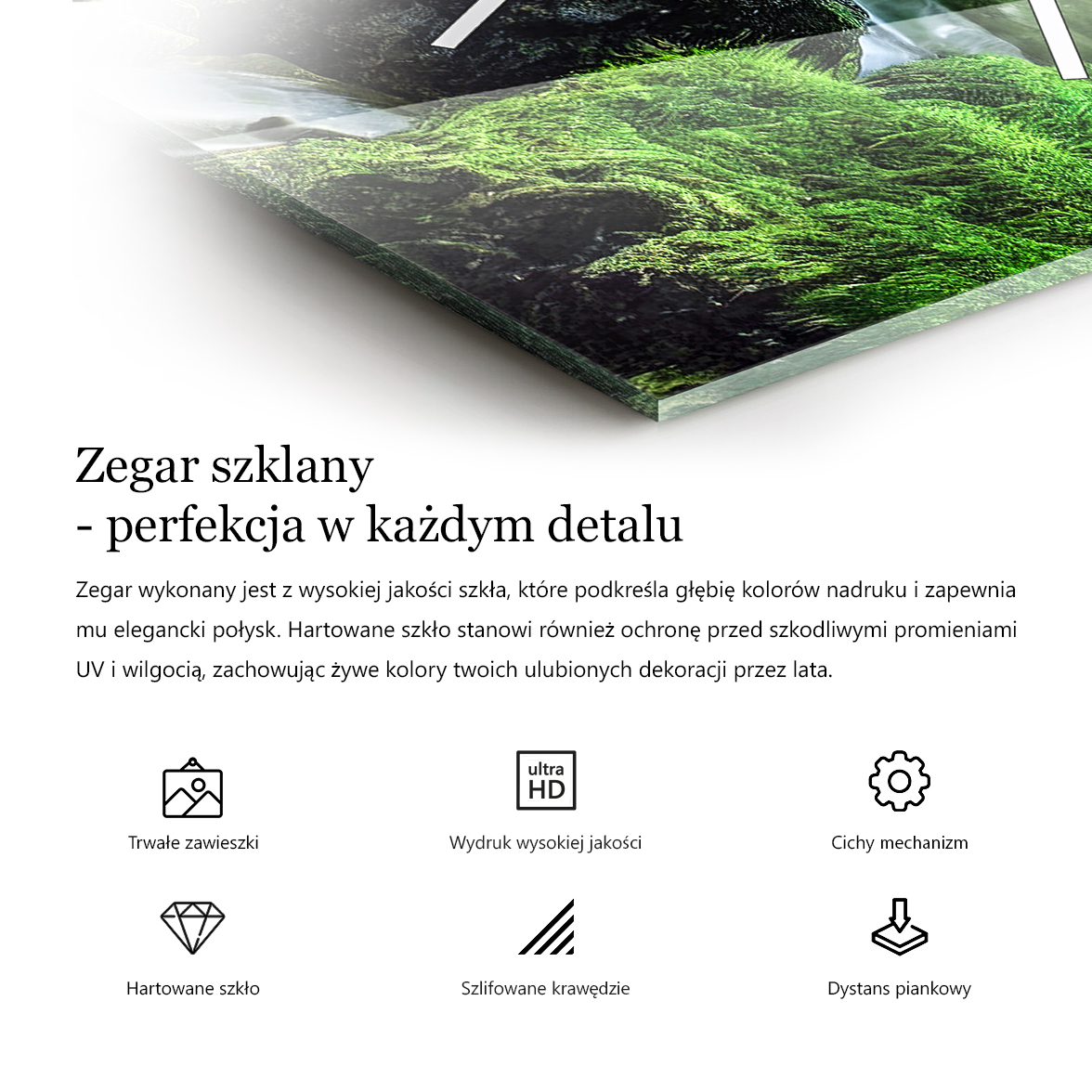 Pamiętaj, że kupujesz zegar szklany z nadrukiem. Motywy takie jak np. brokat, złoto, srebro, beton, marmur, pordzewiała blacha, itp. są nadrukowane, przez co mogą się różnić wyglądem od ich prawdziwych odpowiedników.